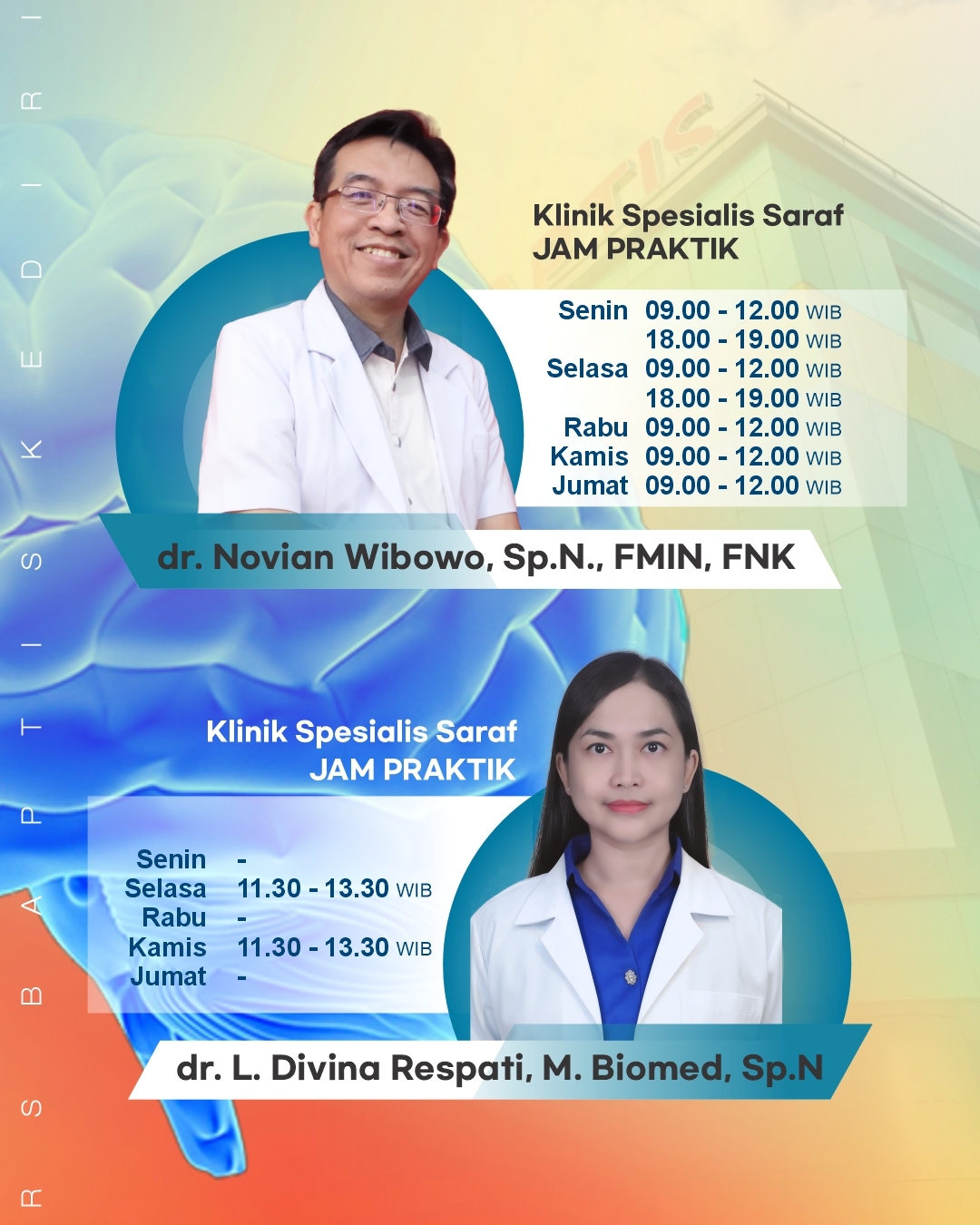 Kontribusi tenaga ahli sangat penting bagi Rumah Sakit Baptis Kediri, berikut daftar dokter yang melayani di Rumah Sakit Baptis Kediri.