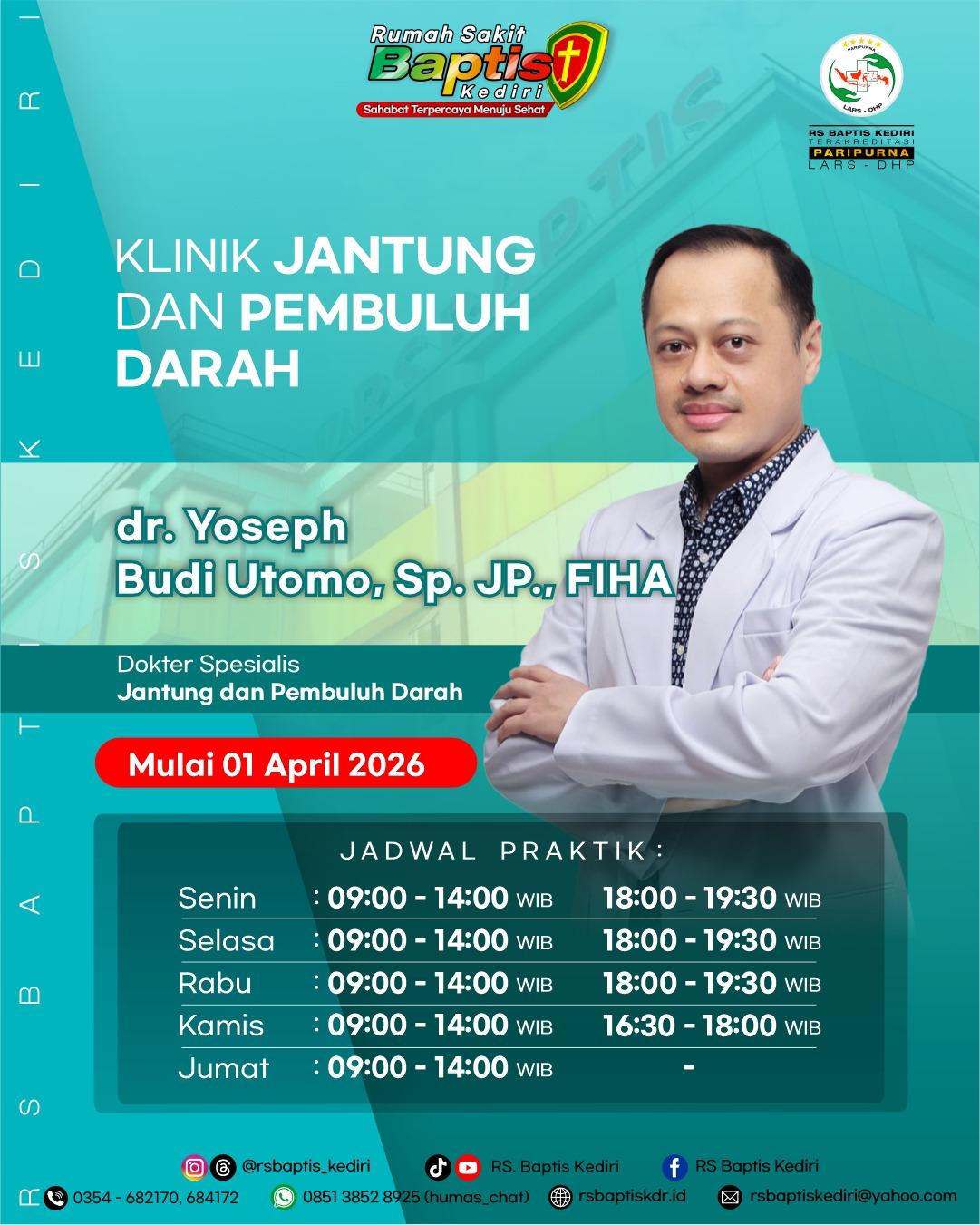 Kontribusi tenaga ahli sangat penting bagi Rumah Sakit Baptis Kediri, berikut daftar dokter yang melayani di Rumah Sakit Baptis Kediri.