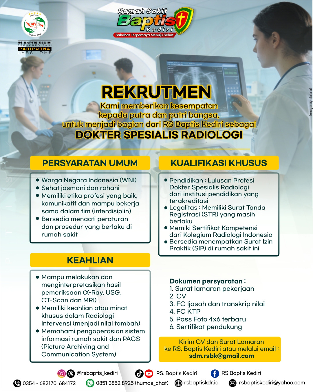 Rumah Sakit Baptis Kediri sudah menyediakan layanan Radiologi seperti CT Scan